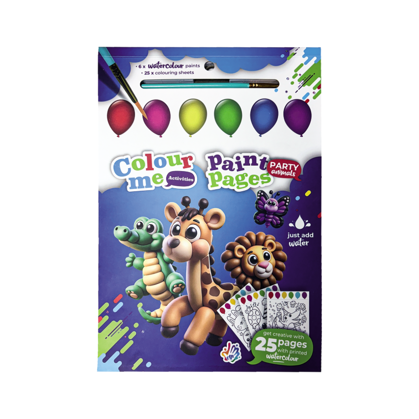 Colour Me Art Kit Paint Pages Party Animals 25pg