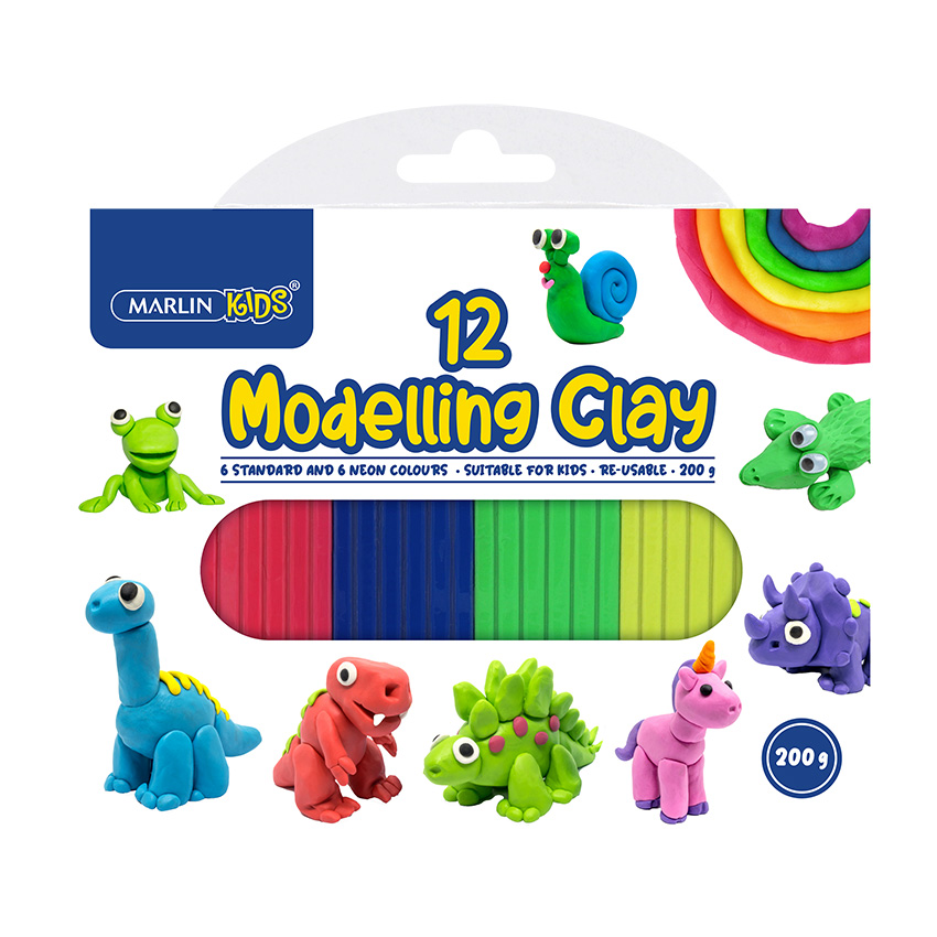 / Marlin modelling clay kids 200g 12 colour neon & std mix